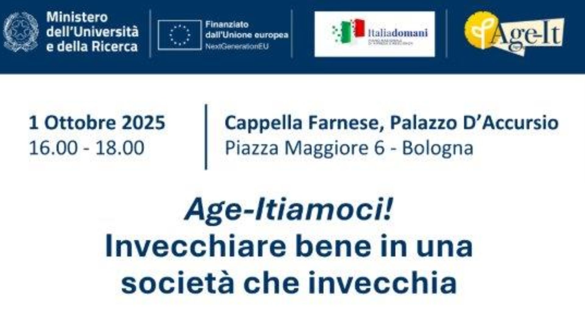 On October 1st, the University of Bologna will host AGE-IT: Ageing well in an ageing society, an open forum bringing together science, institutions, and citizens to address the challenges posed by the aging of the Italian population. The project involves 24 professors and 7 researchers from 9 university departments, with the goal of exploring the issue from a multidisciplinary perspective.