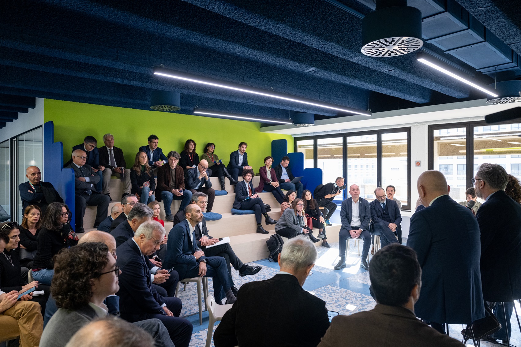 The goal is to create an operational landing point for innovative businesses interested in establishing themselves in the Bologna area, fostering connections with research, industry and high technology. The temporary spaces in Viale Aldo Moro 26 – over 1,100 square meters within the exhibition district and just a few kilometers from DAMA – offer flexible workstations: offices, coworking areas, meeting rooms and spaces for events and networking.