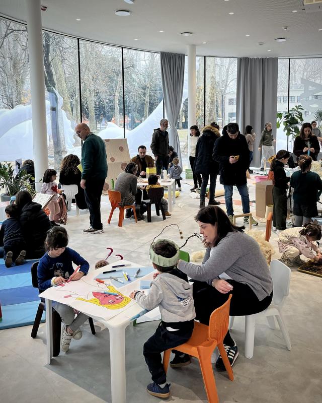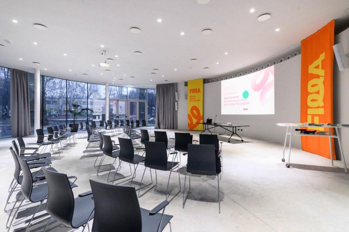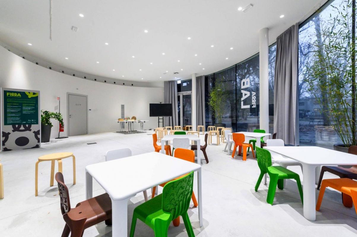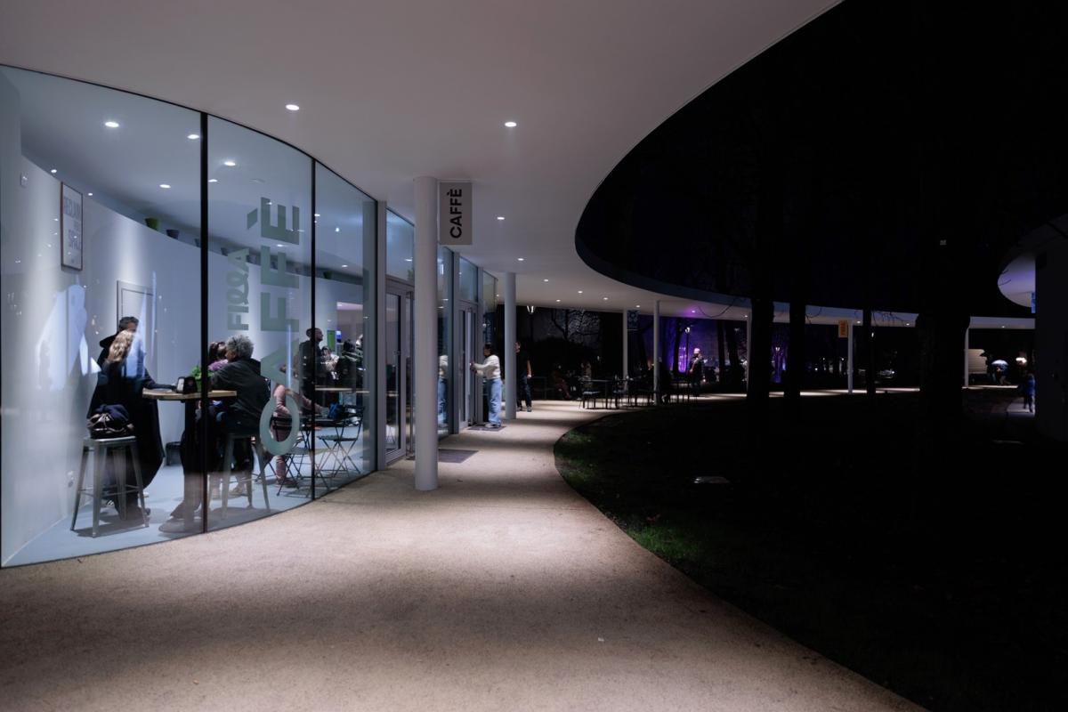 The structure consists of three glass and steel pavilions connected by a roof that evokes the city’s most iconic architectural feature: the porticoes. The space includes: A spacious Auditorium for conferences and performances; a Laboratory space for workshops and research; Café specifically designed to welcome families with children.