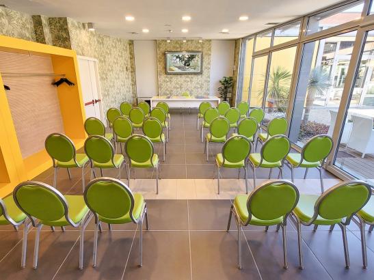 Born from a unique low-impact environmental project, it boasts 108 rooms and 3 meeting rooms, plus other multi-purpose spaces, with the highest flexibility in terms of setup, advanced technology, and all with natural light, in addition to the renowned Corbezzoli Restaurant, MICHELIN Guide since 2023, guaranteeing high-quality banqueting.