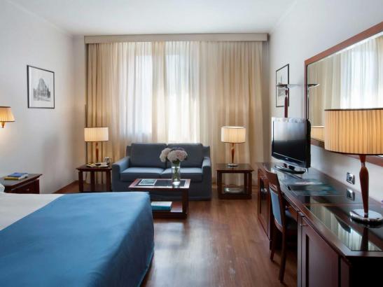 The hotel's 193 stylish, elegant and comfortable rooms and suites all feature prestigious furnishings and many overlook an unforgettable panorama of the city's rooftops and medieval towers.