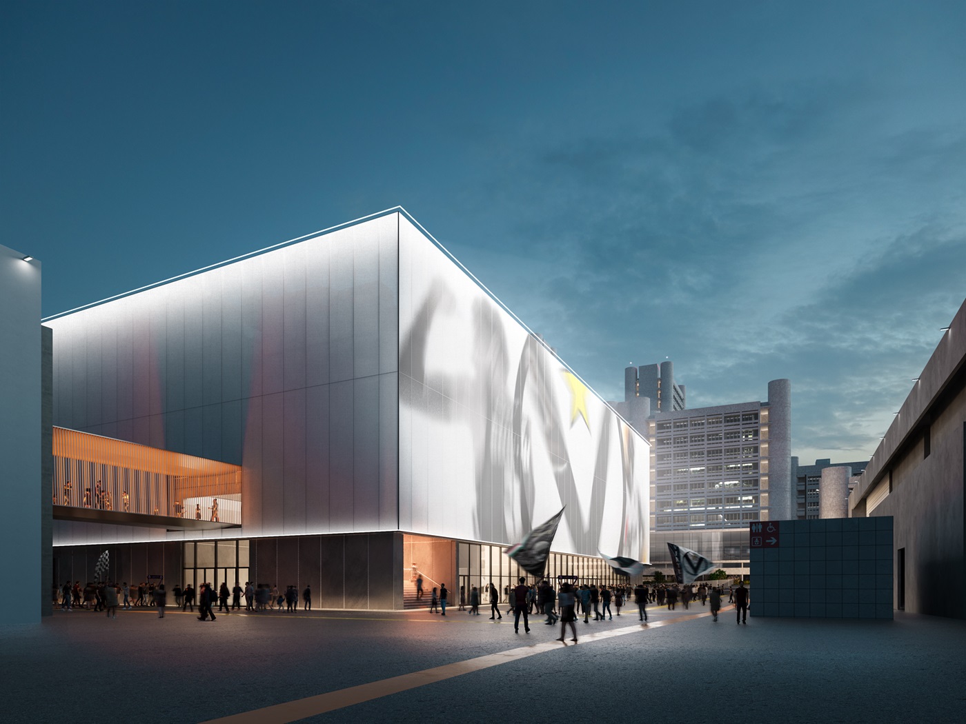 La struttura sarà caratterizzata da una facciata dinamica, concepita come una “lanterna urbana” capace di proiettare contenuti e raccontare gli eventi alla città. Grazie a tribune telescopiche mobili, servizi integrati e spazi riconfigurabili, il padiglione potrà trasformarsi rapidamente per accogliere diverse tipologie di manifestazioni.