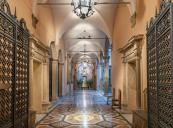 All’interno si apre la straordinaria ‘Sala del Papa’ ornata da un camino in pietra serena, realizzato probabilmente su disegno di Pellegrino Tibaldi.